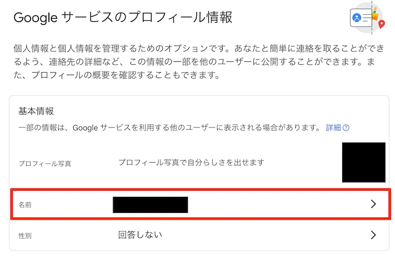 4. 「基本情報」欄内にある「名前」をクリックしてください.